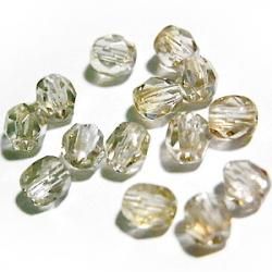 ファイヤーポリッシュビーズ。 4mm サイズ。 カラーはクリスタルゴールデンフィニッシュ。 60粒ごとの価格です。 チェコ製。 通し穴があるラウンド型ビーズ。 ファイヤーポリッシュは、マシンカットの後、火で加工する製法で、特有の丸みと艶と輝きを持つチェコ産のガラスビーズ。 あたたかみのあるカットは、ファイヤーポリッシュならではです。 テグスやチェーンを通し、アクセサリー作り、ストラップなど各種小物製作にご利用ください。