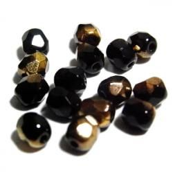 ファイヤーポリッシュビーズ。4mmサイズ。 カラーはジェットゴールド。 30粒ごとの価格です。 チェコ製。 通し穴があるラウンド型ビーズ。 ファイヤーポリッシュは、マシンカットの後、火で加工する製法で、特有の丸みと艶と輝きを持つチェコ産のガラスビーズ。 あたたかみのあるカットは、ファイヤーポリッシュならではです。 テグスやチェーンを通し、アクセサリー作り、ストラップなど各種小物製作にご利用ください。